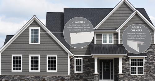 Add a new level of aesthetics from the most trusted name in Trim and Moulding products. The AZEK J-Channel Trim Series beautifully complements any style of siding for a fresh, clean finished look that’s easy to install. AZEK J-Casing and J-Quick Corners were expressly designed to complement premium vinyl siding. Provide a seamless transition between siding and trim that’s durable, protected and flexible.
