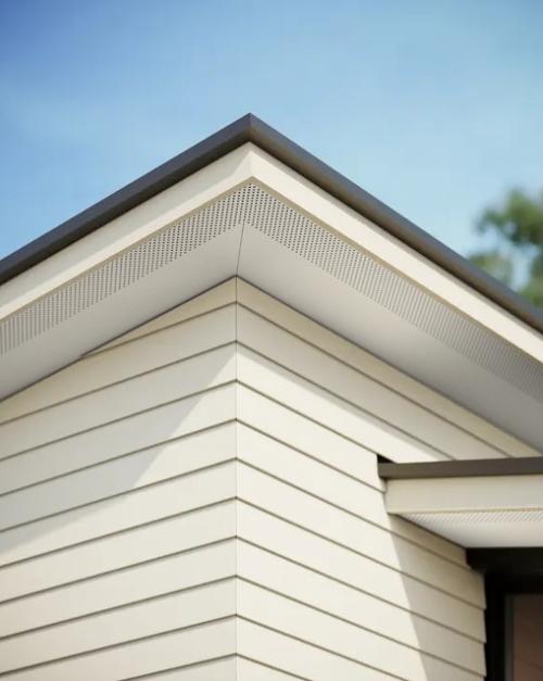 It's Possible with James Hardie ™ Endless design possibilities, lasting beauty, and trusted protection from the elements. Discover the world of exterior solutions by James Hardie. Use Hardie vented soffit for the underside of roofline eaves. Durable fiber Cement Siding engineered specifically for use with freezing temperatures, extreme temperature variations, hail snow, ice, and other wet weather. Complies with ASTM E136 and is noncombustible, resists flame spread making for a safer home. Resists damage from woodpeckers, termites, and other pests. Mimics appearance of real wood siding with less maintenance. Finished with ColorPlus Technology, a baked on proprietary paint finish that resists fading, keeping the color vibrant longer.