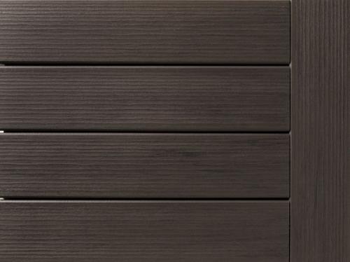 - Wood and resin composite core protected by a polymer cap that extends into the grooves