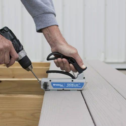 A hidden fastening system with superior holding power that requires no pre-drilling. This seamless installation tool uses stainless steel screws to resist screw shear and installs with a ⅛” gap. Use with square shouldered Azek decking.